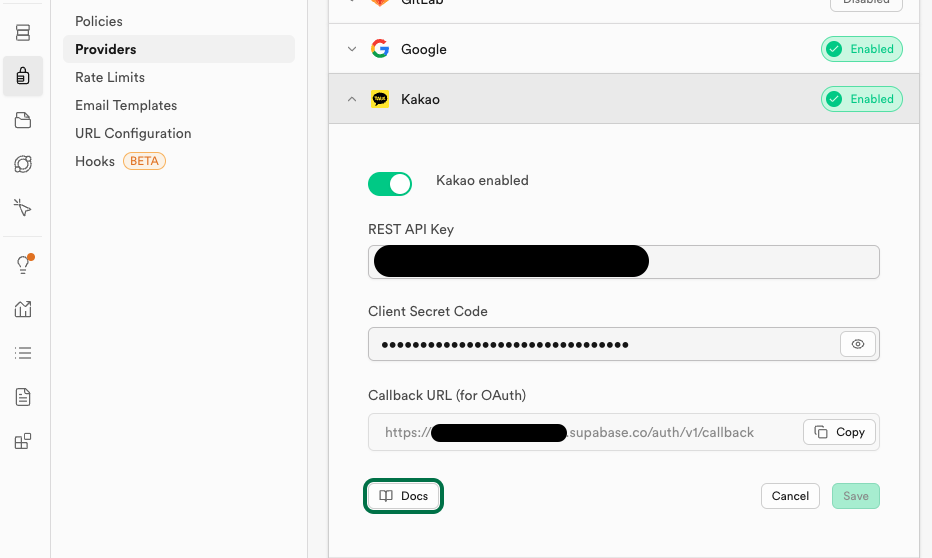 이전 글에서 카카오 개발자 세팅하는 과정을 소개했지만 supabase의 문서에서도 친절하게 안내해주고 있기에 한 번 읽어보는 것을 추천