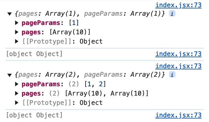 pageParam 매개변수가 있는지 확인page + 1을 nextPageParam으로 반환해서 다음 페이지를 가져옴fetchNextPage()