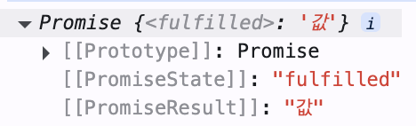 resolve 함수를 실행하면 해당 Promise 객체의 상태는 fulfilled가 되고 인수로 넘겨준 값을 결과값으로 갖는다.