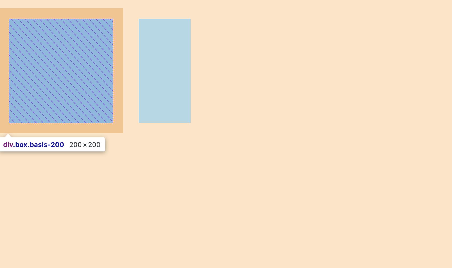 <div class="flex-container"> <!-- 플렉스 컨테이너 내부 div --> <div class="box basis-200"></div> <div class="box"></div> </div>