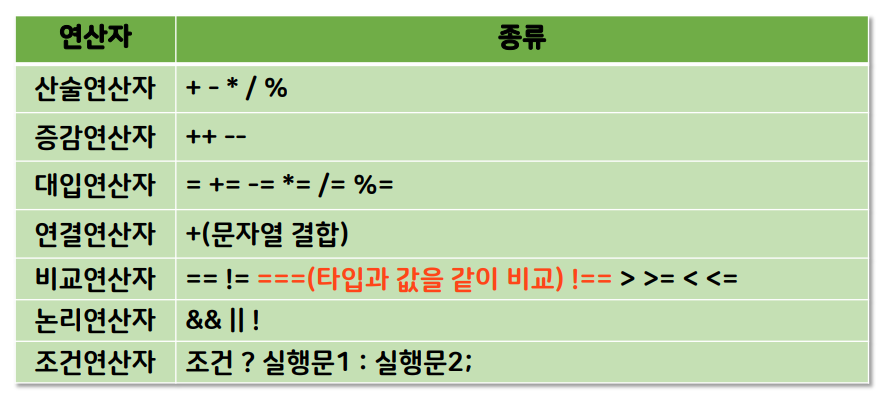 ==는 변수의 값만 비교하며, ===는 자료형까지 비교한다.