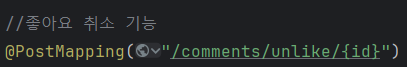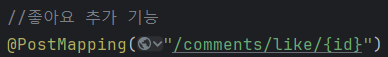 댓글의 좋아요는 우리가 컨트롤러에서 이런식으로 작성했던 것이 기억나실겁니다.