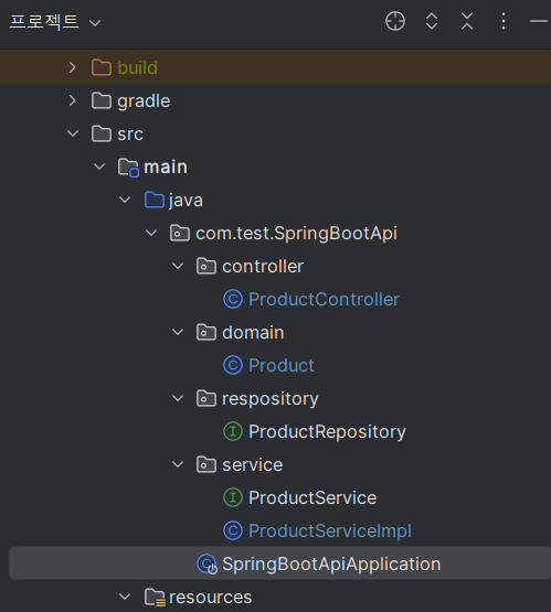 스프링 프로젝트를 실행해보기 위해서는 위 사진에 따라서 경로로 가면 SpringBootApiApplication이 있다. 앞에 SpringBootApi는 우리가 설정한 이름을 가지고 생성이 된다.