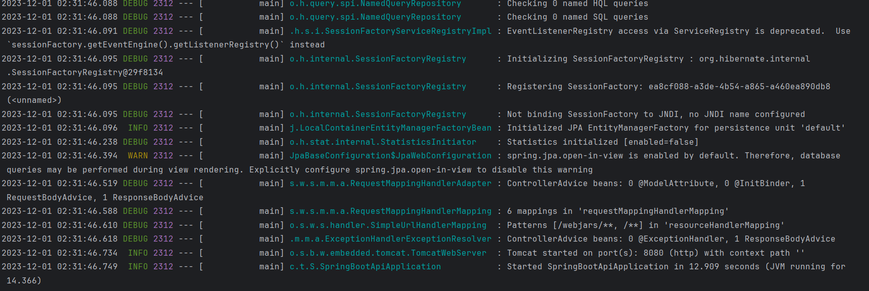 맨 마지막에 Started SpringBootApiApplication 이렇게 실행창에 나올텐데 이러면 스프링 부트 설치가 성공적으로 완료된 것이다!