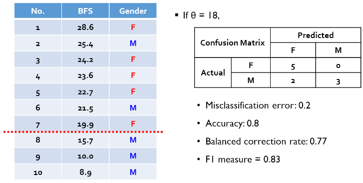 5) Balanced correction rate(BCR) : root{ (실제 True 중 모델이 True라고 예측한 것의 비율) (실제 False 중 모델이 False라고 예측한 것의 비율) }