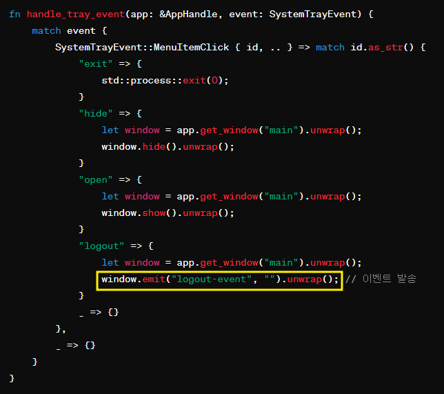 window.emit("logout-event","").unwrap();