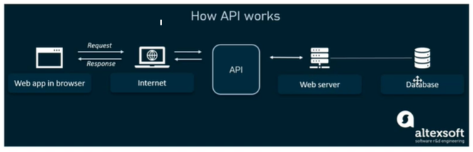 👉 사용자가 브라우저를 통해서 서버에 요청하게 되면 API가 중계계층역할을 하며 요청을 처리한다. 직접 서버의 데이터베이스에 접근하는 것을 방지하기도 한다.