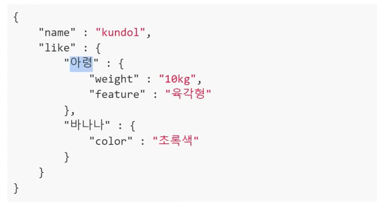 : JavaScript Object Notation, 자바스크립트 객체 문법으로 구조화된 데이터를 표현하기 위한 표준 포맷