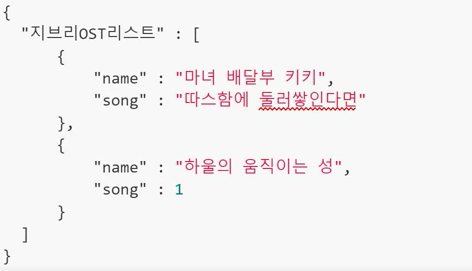 👉 여러개의 지브리OST가 있기 때문에 배열 []을 기반으로 표현한다.