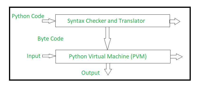 바이트 코드가 PVM(Python Virtual Machine)으로 전송된다. 이는 파이썬 인터프리터로 파이썬 바이트 코드를 시스템 실행 코드로 변환한다.