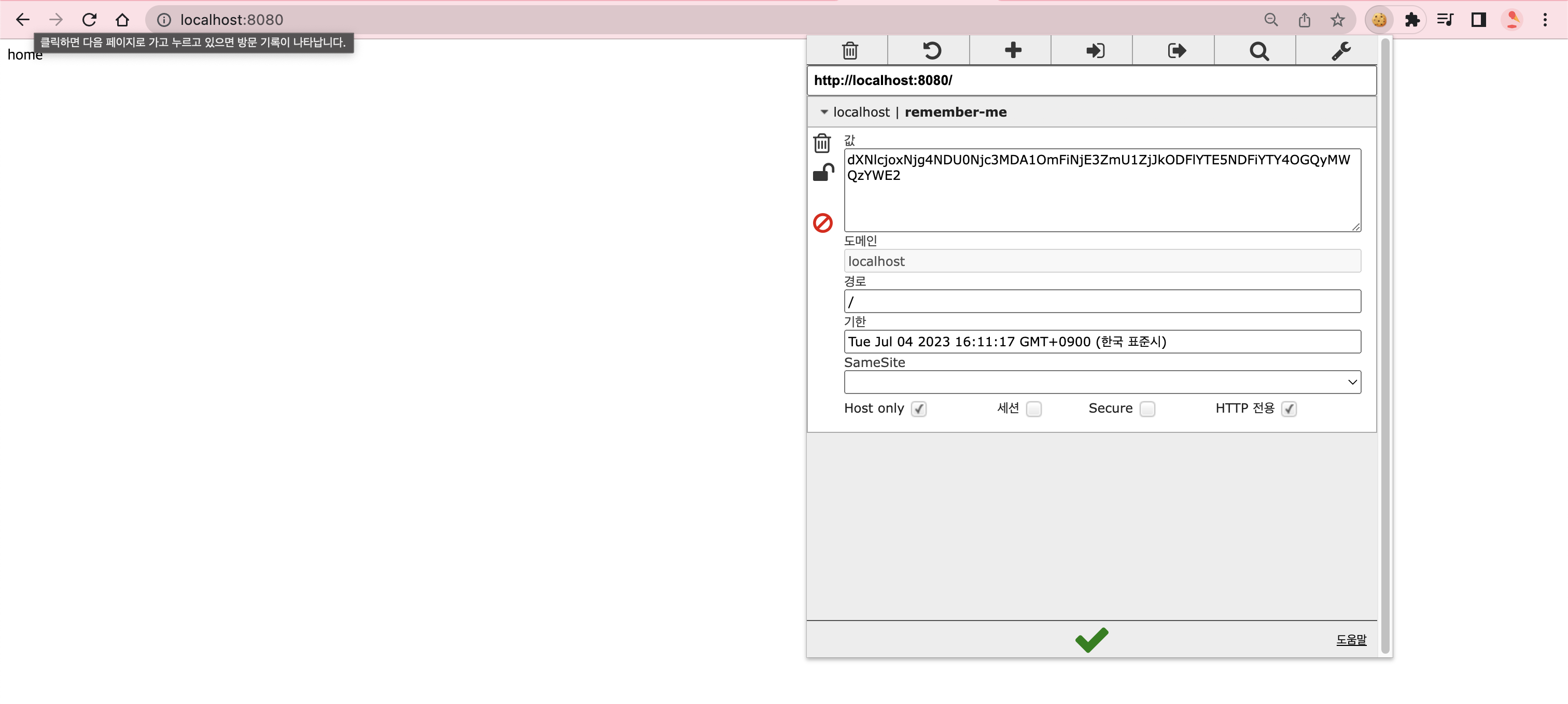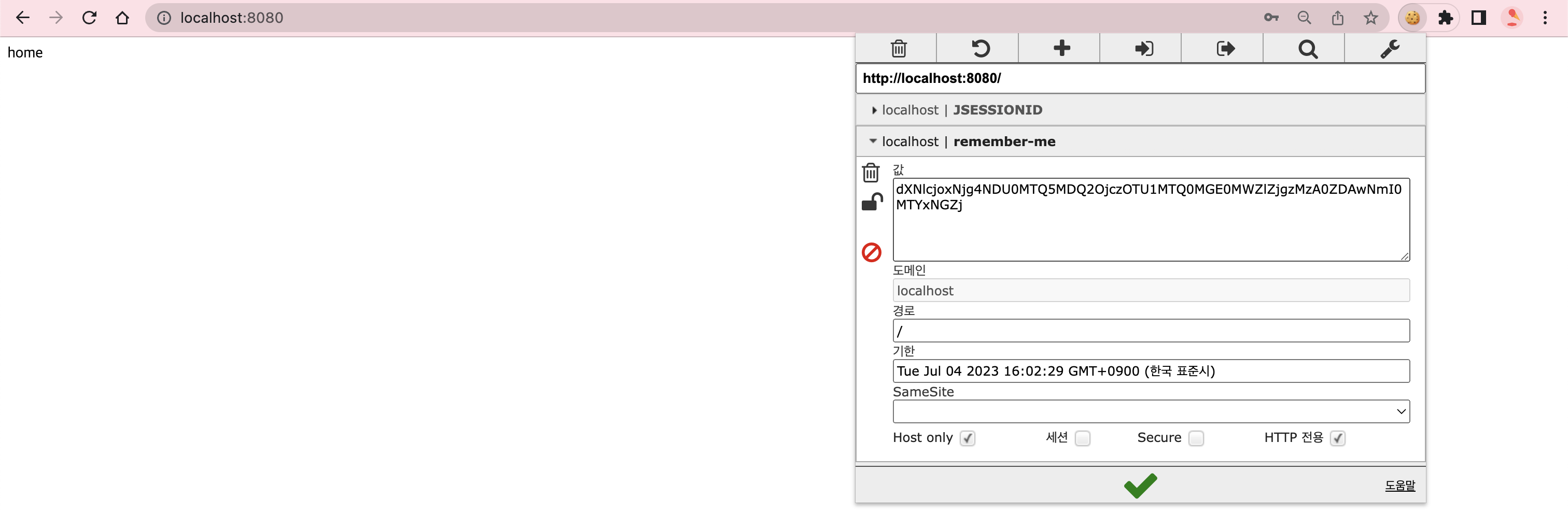 - JESESSIONID만 삭제하고 remember-me만 남겨뒀을 때