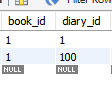 만약 1번 책에 1번 일기를 넣고 싶으면 이런식으로 page 테이블에 등록할 수 있다.
