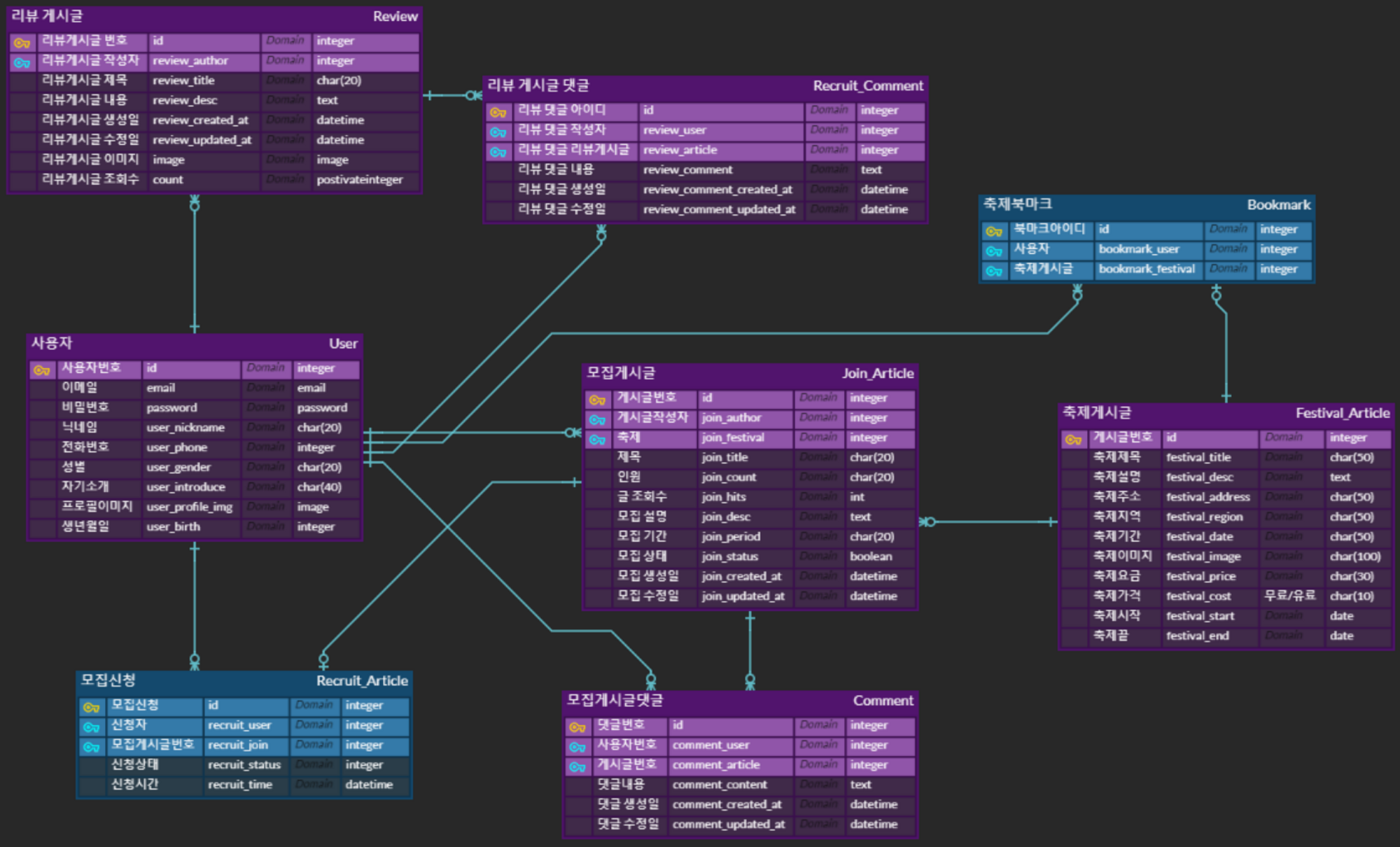 - 축제게시글 : 크롤링한 축제 정보를 보여주는 게시글