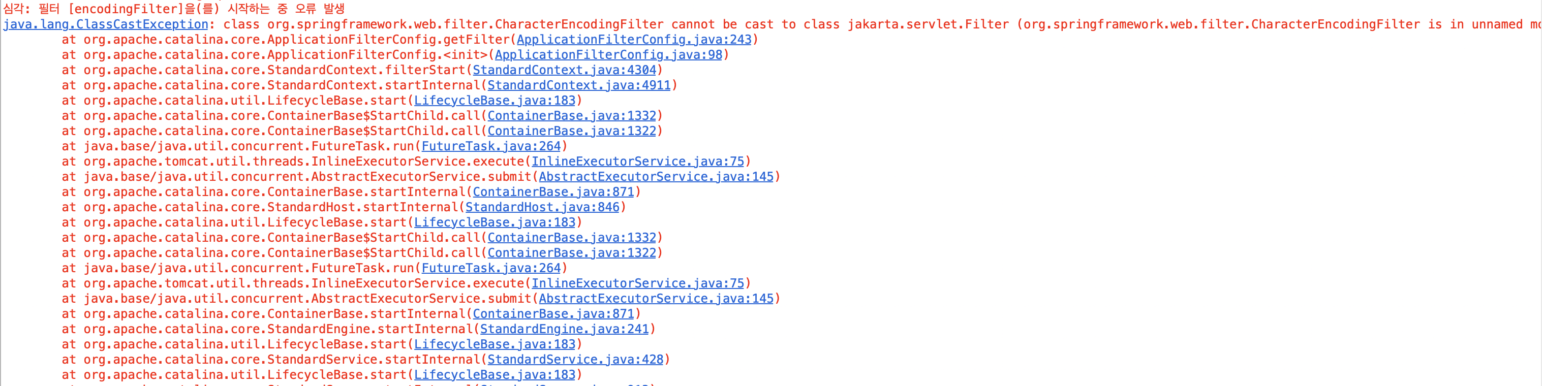 ์ฌ๊ฐ: ํํฐ [encodingFilter]๋ฅผ ์์ํ๋ ์ค ์ค๋ฅ ๋ฐ์