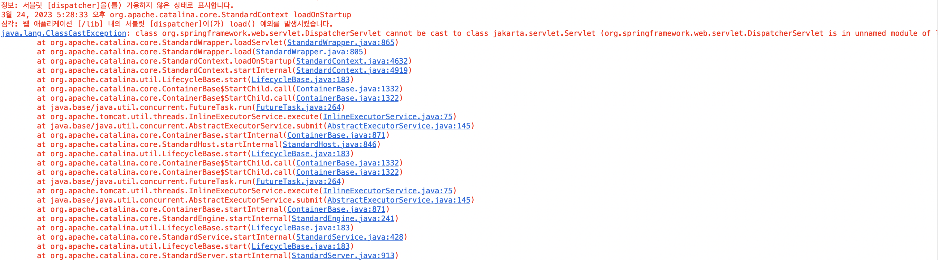 java.lang.ClassCastException: class org.springframework.web.servlet.DispatcherServlet cannot be cast to class jakarta.servlet.Servlet