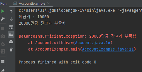잔고 부족 예외를 커스텀하며 작성하여보자.