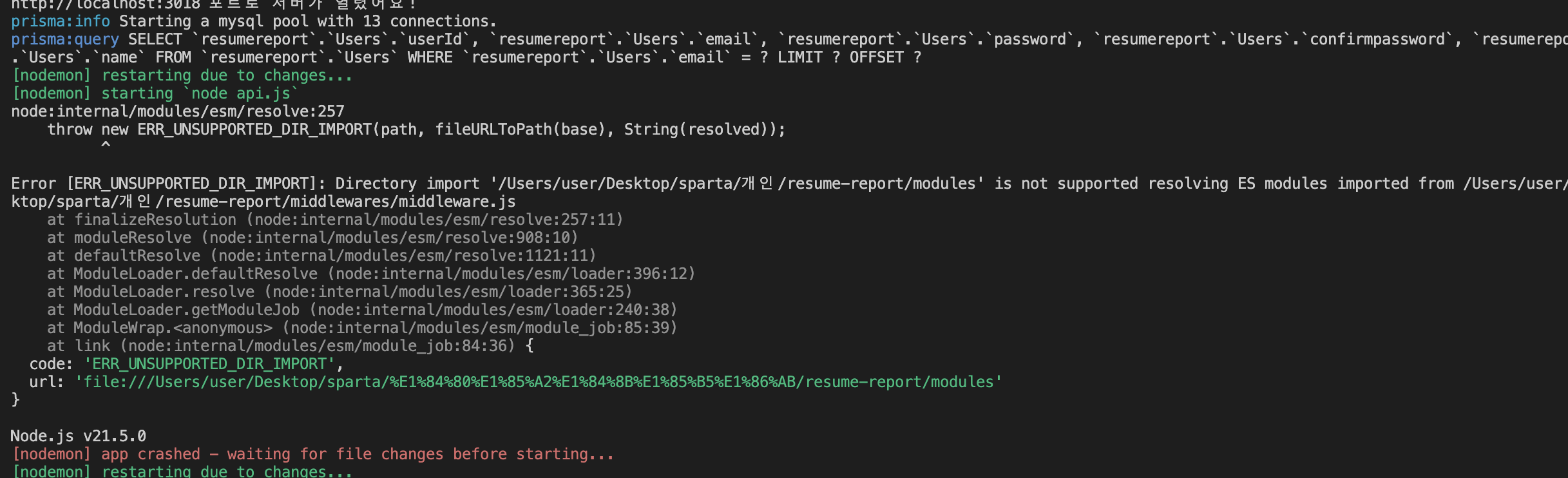 위의 ERROR와 비슷하게 yarn run dev 실행 시 node api.js가 실행되지 않았다.