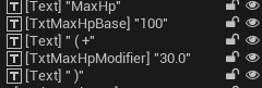 UpdateStat에서는 가져온 값을 TextBlock의 SetText를 이용해서 변경된 스탯 값을 위젯에 적용한다.