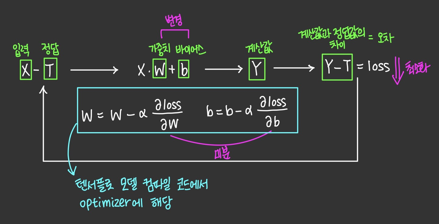 (W와 b를 제외하고 모두 고정값이므로 변동값인 W와 b의 값을 바꾸어야 함)