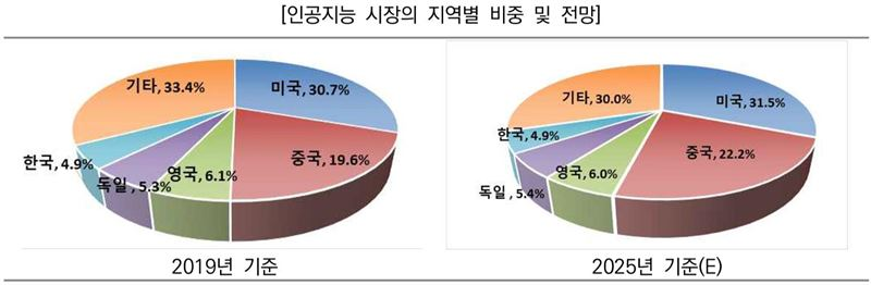 전 세계적으로 인공지능의 규모는 점점 커져가고 있는데 그 중에서도 이 시장을 주도하는 것은 미국과 중국이다. 이러한 차이가 날 수 밖에 없는 이유는 데이터의 양 때문이다. 인공지능의 경우 데이터가 가장 중요한데 미국과 중국은 데이터 중에서도 쓸만한, 가치있는 데이터가 많기 때문이다.