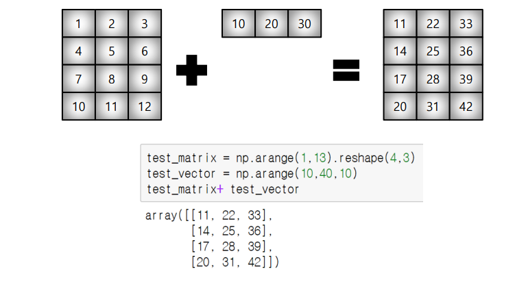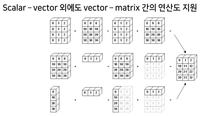 broadcasting(shape이 다른 array 간 연산)Element-wise operations(shape이 같은 array의 연산)