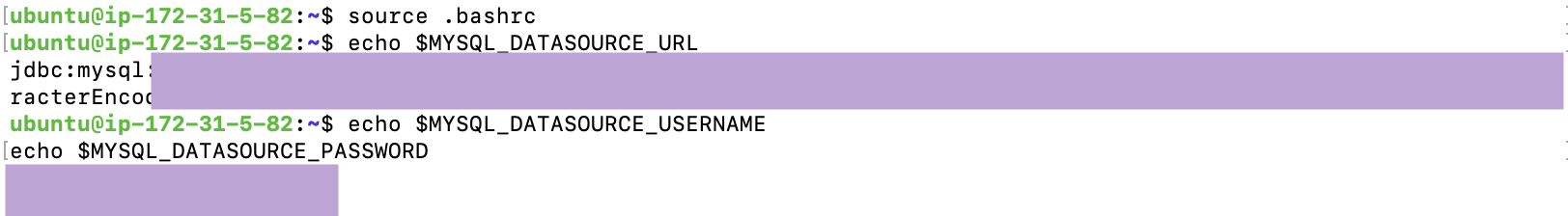 사진에서 처럼 MySQL 연결을 위한 환경 변수를 EC2 인스턴스는 전혀 모르고 있었다.