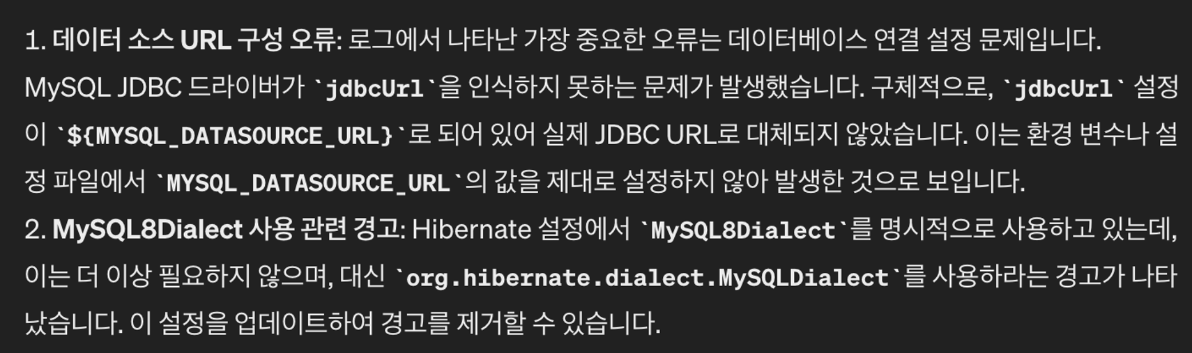 로그를 분석해보니 데이터베이스 환경 변수를 전혀 읽어오지 못하고 있었다.