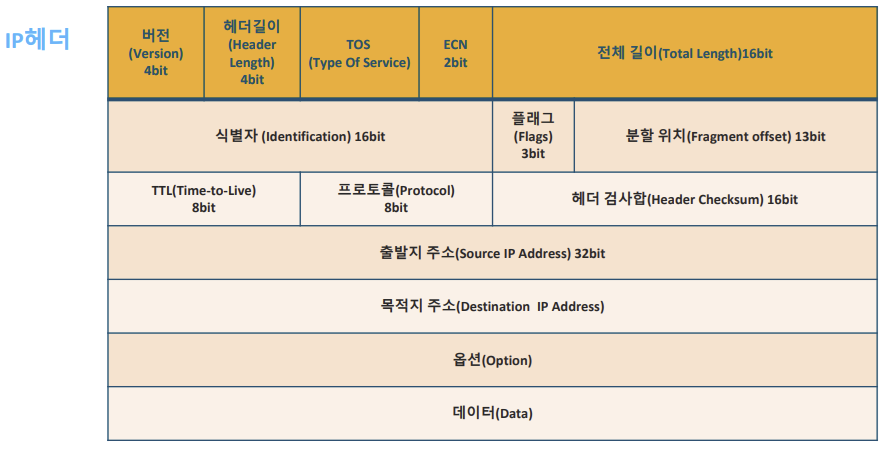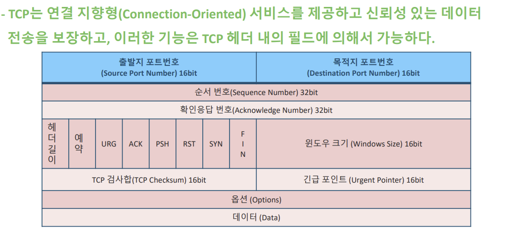 옵션: 최대 40바이트이며, TCP 통신과 관련된 추가 적 옵션이 위치한다.