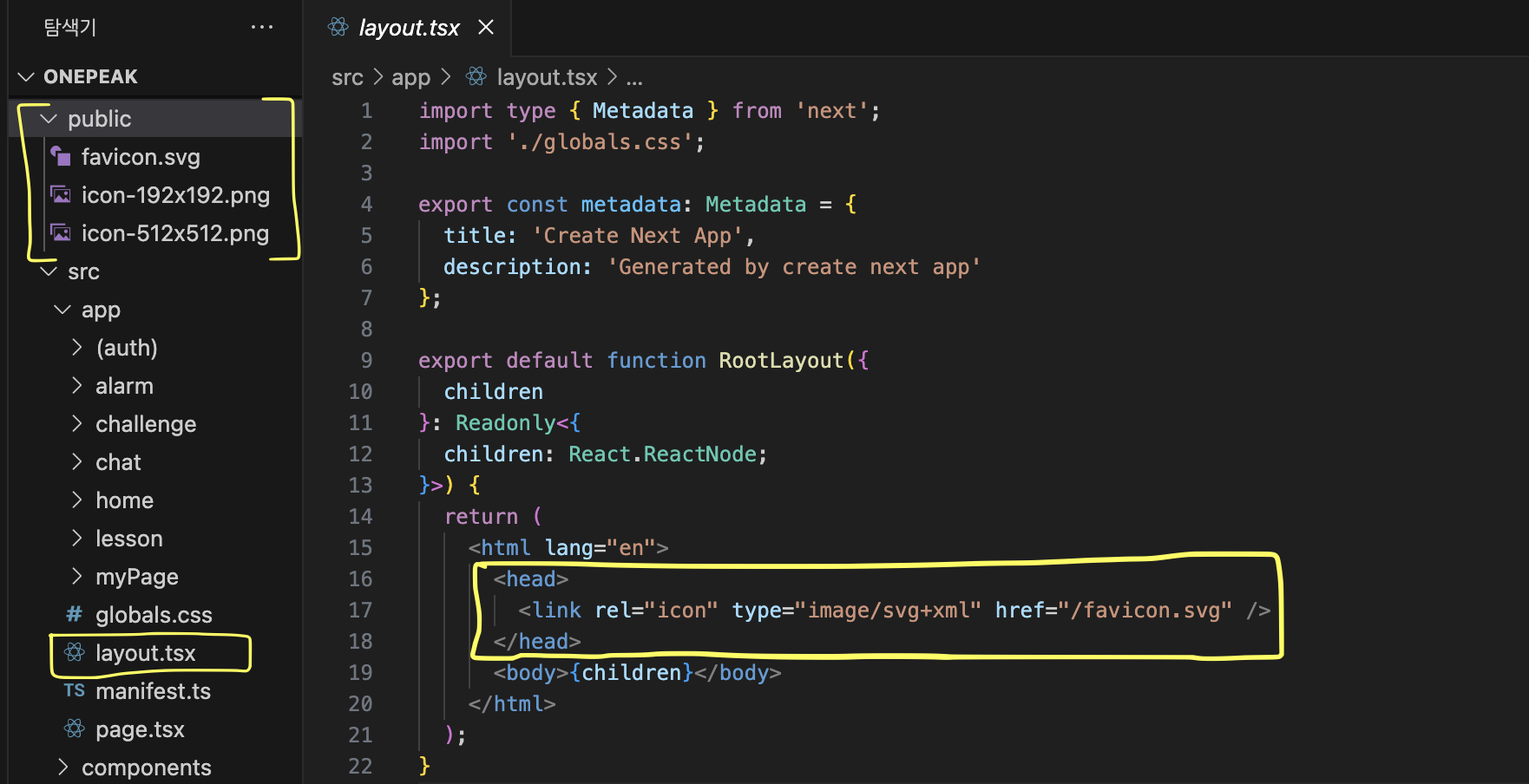 icon 이미지는 src 폴더와 같은 위치에 public 폴더를 만들고 그 안에 넣어준다.