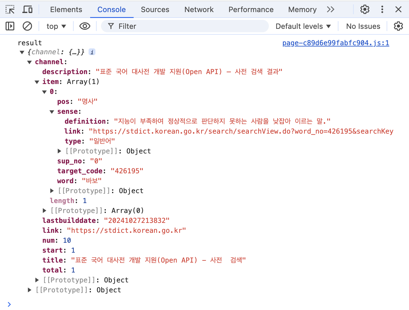 호출한 데이터를 보니 내용이 우리 프로젝트에서 필요한 내용이 아닌 것을 확인함.