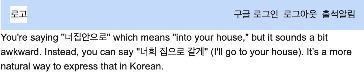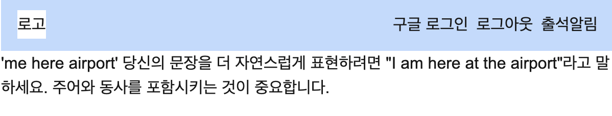 결과: 어색한 표현을 어떻게 표현하면 좋을지 고쳐줌.