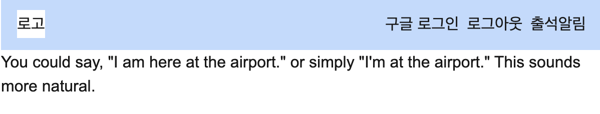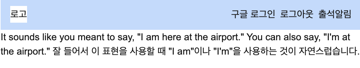 AI는 “자연스러운 표현으로는 "I’m in the airport." 라고 할 수 있습니다.” 라고 코칭해줘야함.