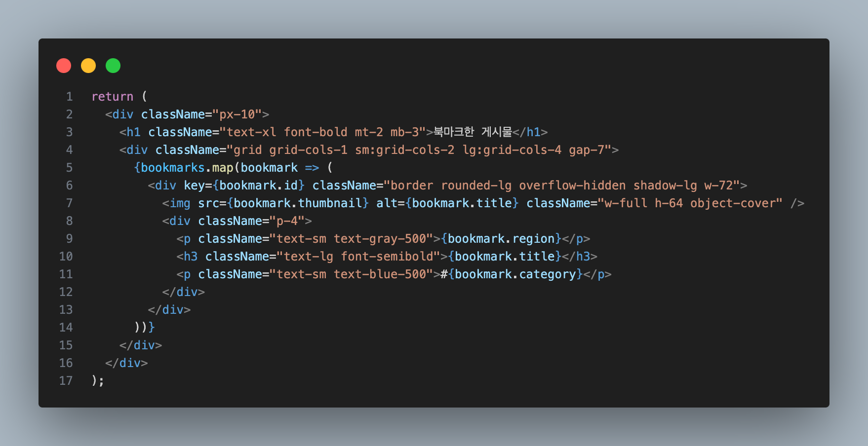grid-cols를 sm, lg 사이즈일 때 몇 열씩 보여질지 나타냈다.overflow-hidden: 카드 안 컨텐츠가 카드의 크기를 넘어설 때 그 넘치는 부분을 숨기는 역할)object-cover: 이미지가 부모 요소의 크기에 맞게 잘리거나 중앙 기준으로 비율을 유지한 채 축소되어 표시)