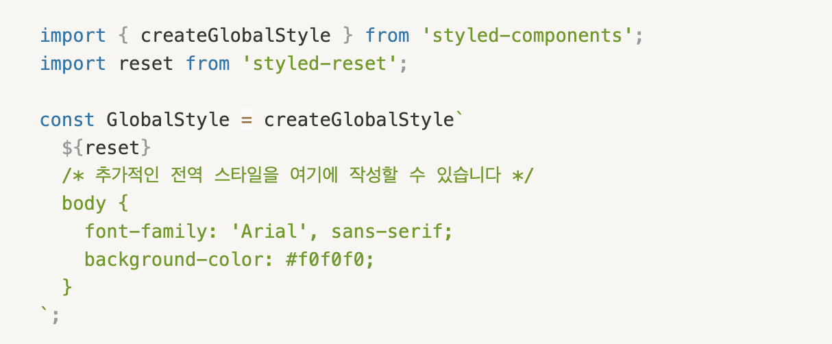 index.css 나 App.css 대신 createGlobalStyle 를 사용해서 GlobalStyle 컴포넌트를 만들 수 있다.