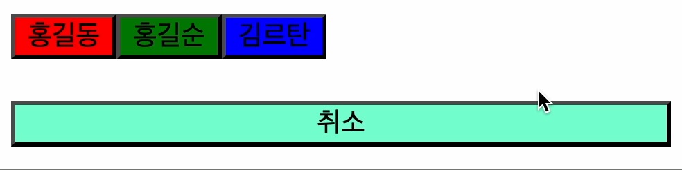 각 '이름버튼'을 클릭하면 회색으로 바뀌고,