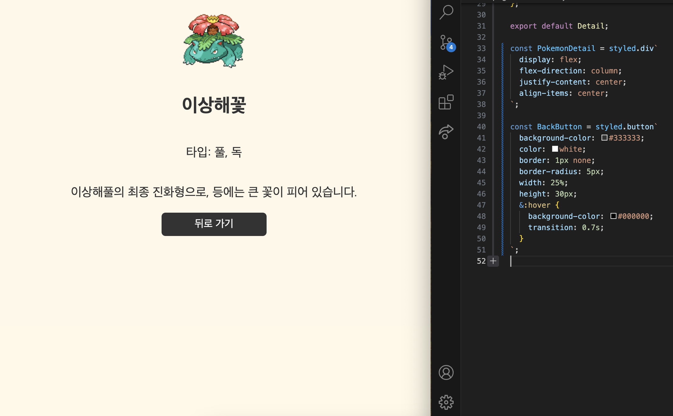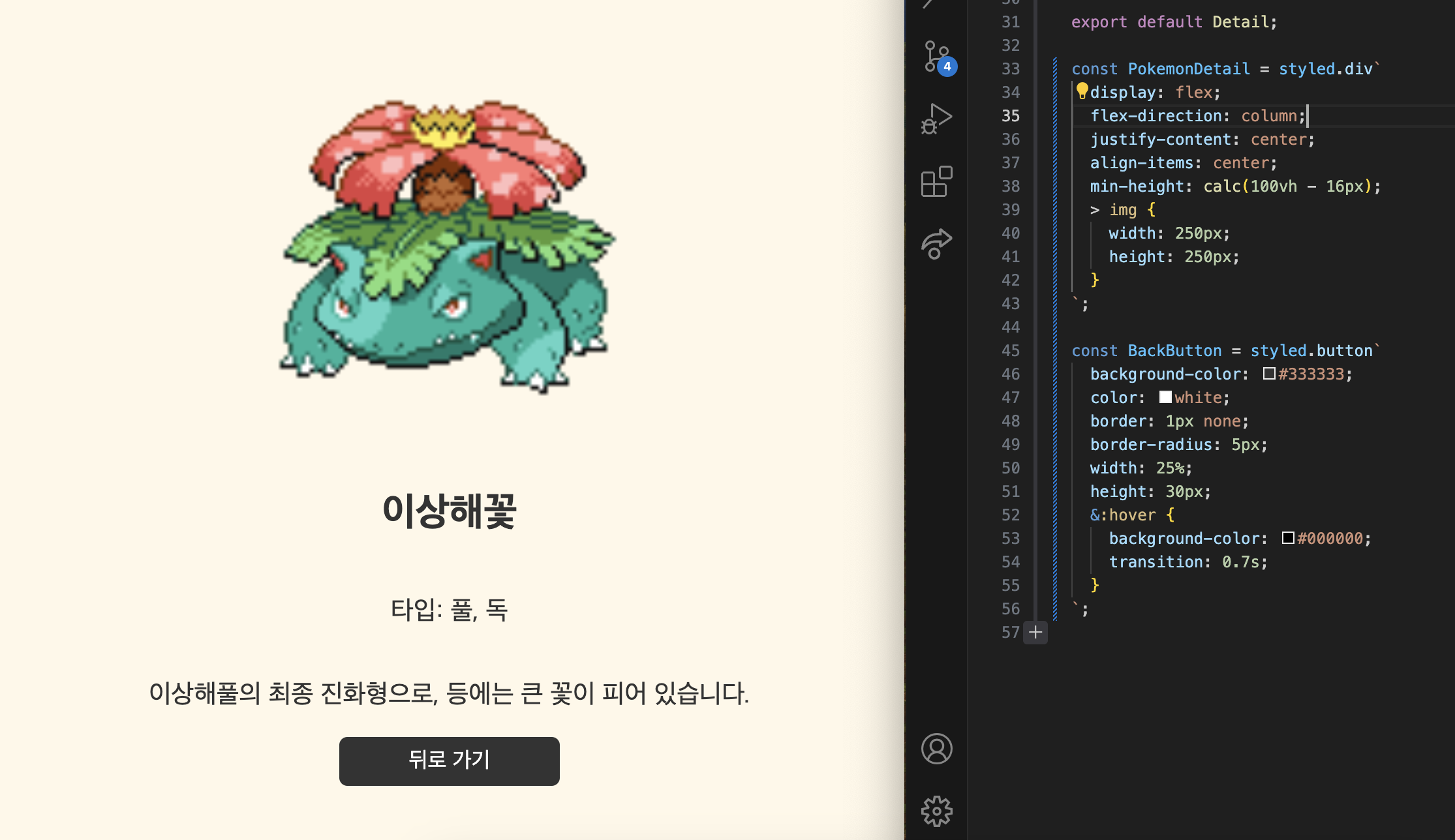 PokemonDetail스타일컴포넌트에img만 따로 스타일을 주는데 원하는 크기로 width와 height 값을 넣어줬더니 됐다. 너무나도 간단한 방법! (뭔가 이미지가 깨지는? 느낌인 것 같은데 일단 이대로...🤫)