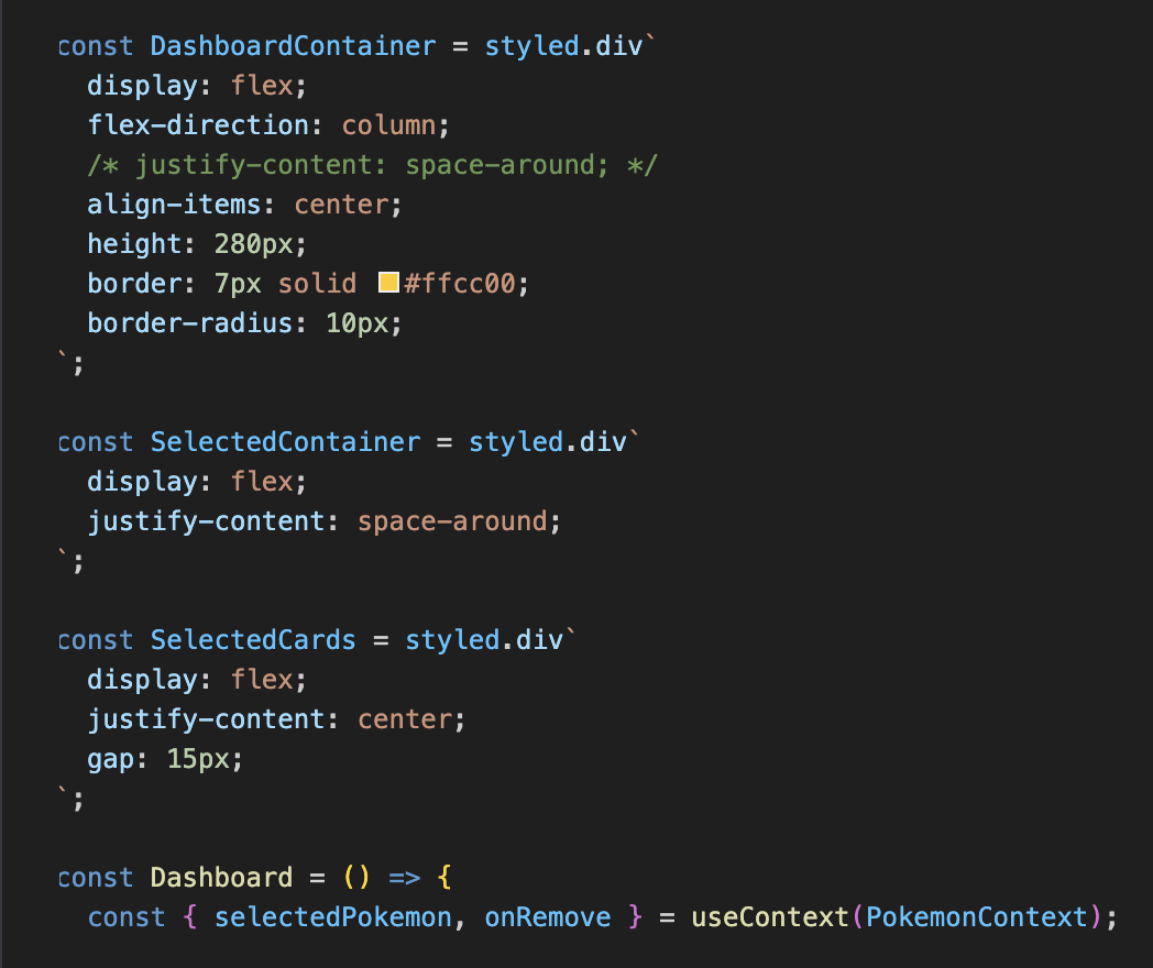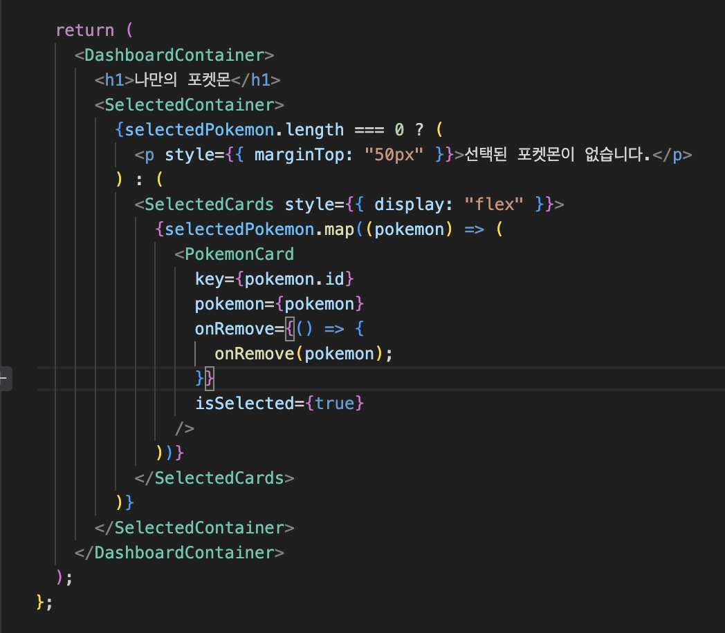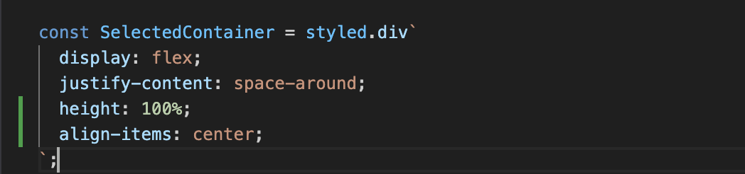: p태그 안에 써둔 marginTop을 지우고, SelectedContainer 스타일 컴포넌트 안에 heigh: 100%;, align-items: center;를 추가했더니 바로 적용되었다. 내가 원하던 대로 였다. 계속해서 높이를 px로 주려했는데 100%로 꽉 채우니 적용되었다.
