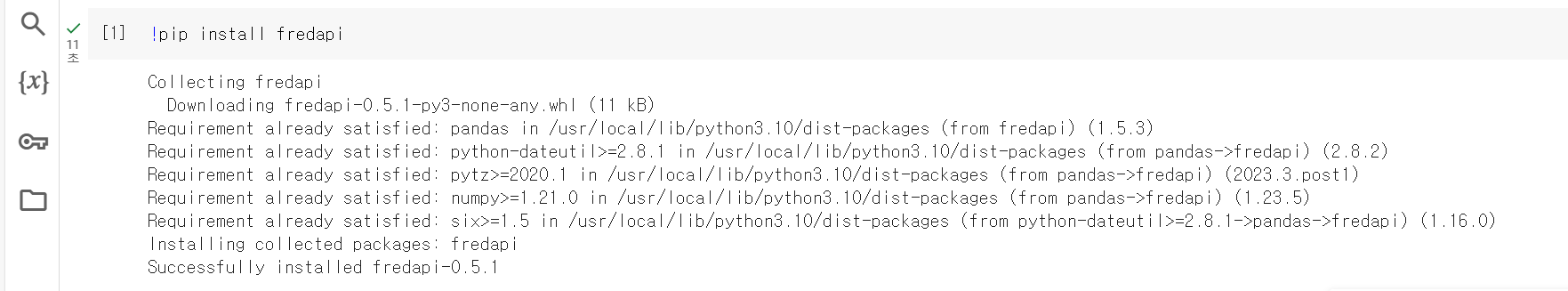 먼저 !pip install fredapi 입력으로 fredapi를 설치해 주고,