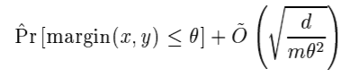 여기서 식이 너무 복잡하니까, 앞의 항은 0이라고 간주합시다. 즉, 모델이 예측한 레이블이 모두 정확하다고 간주하는 겁니다(과적합 상황 가정). 뒷 항은 분류기의 margin에 대한 항이므로 이제 SVM처럼 각 데이터 중 margin이 가장 작은 데이터의 margin을 최대화하는 문제가 됩니다.