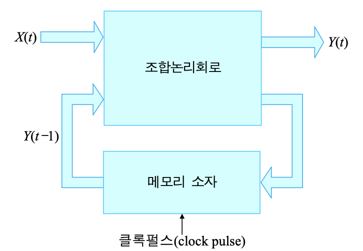 출력이 “현재 입력”과 “이전(과거) 상태”에 함께 의존하는 논리회로