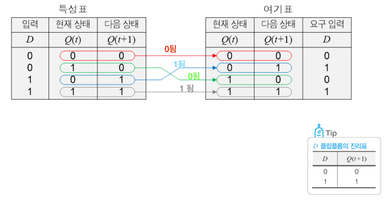 현재 상태: 클록 펄스(CP)가 입력되기 전의 플립-플롭 출력 상태