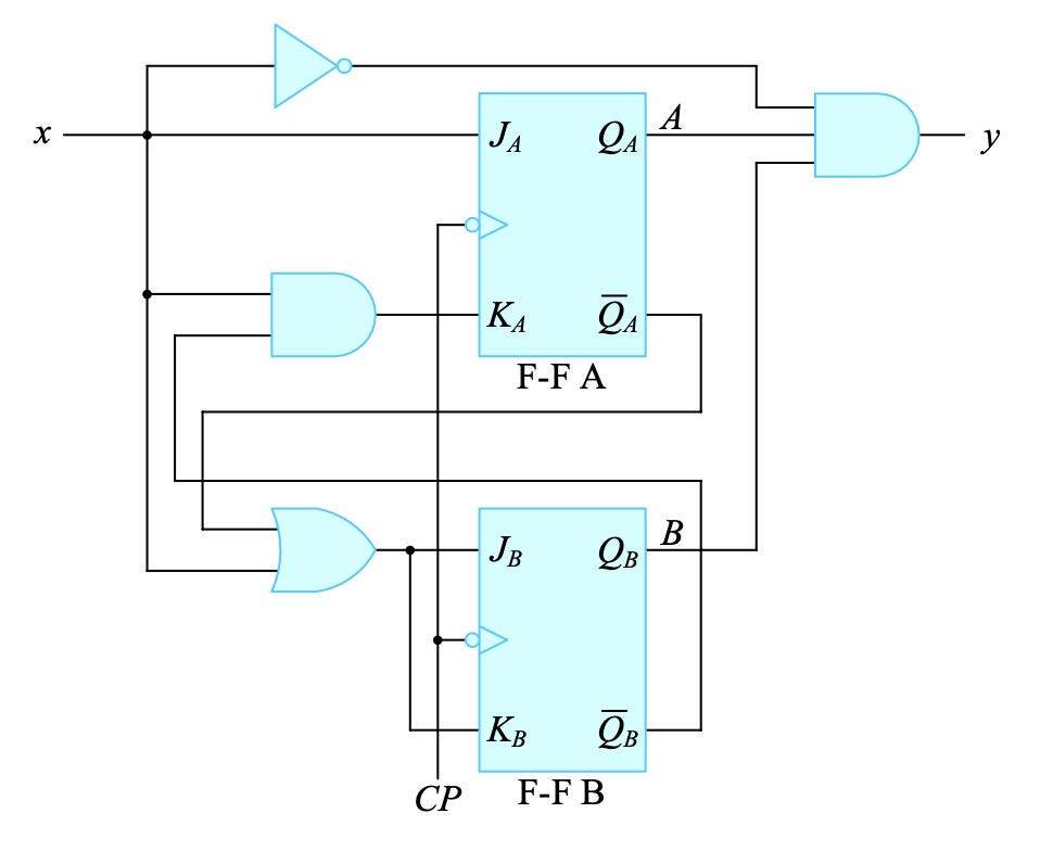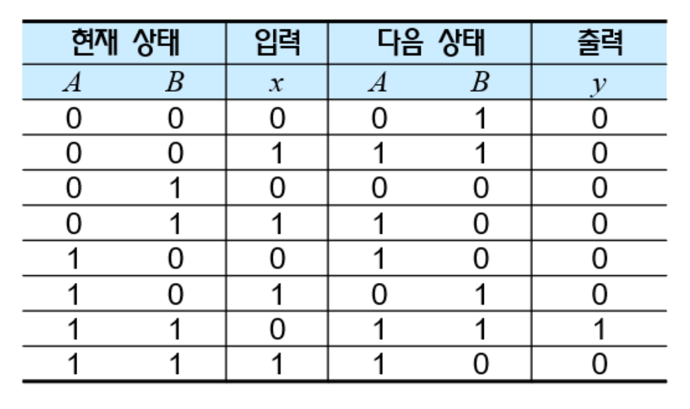 - 순서논리회로의 동작은 입력, 출력, 그리고 현재 상태에 의해 결정됨