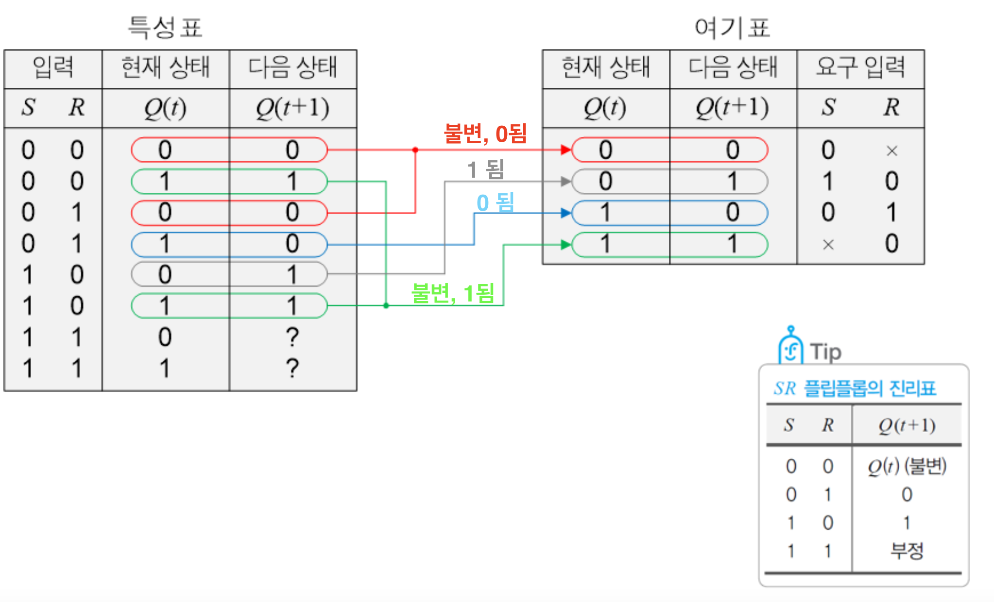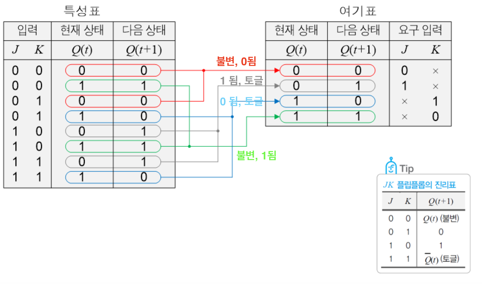 - 플립플롭의 현재 상태와 입력이 주어졌을 때,