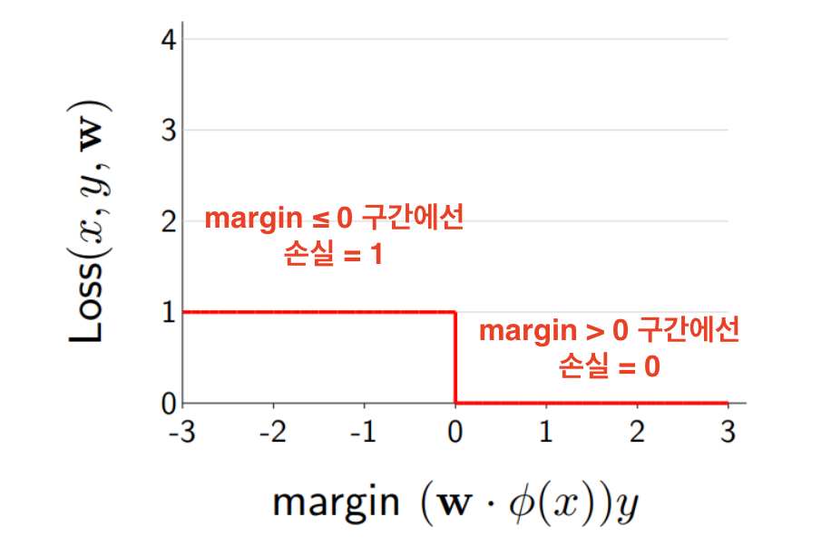 Loss0−1(x,y,w)=1[hw(x)=y]={0,1,맞은 경우틀린 경우