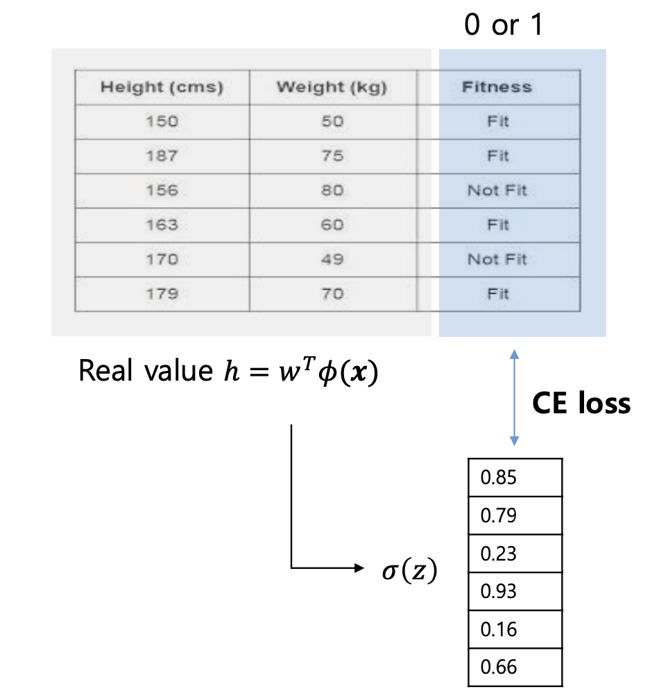 : 시그모이드를 거쳐 나오는 확률을