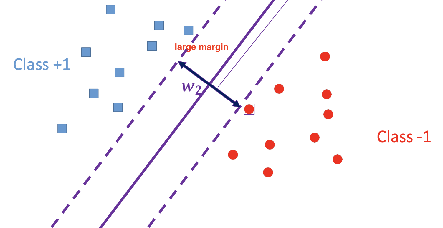 거리를 최대화하려면 ∥w∥2를 키워야 하고,