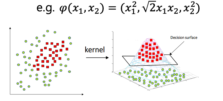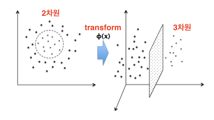 - ϕ(x) 라는 함수로 3차원으로 transform하면