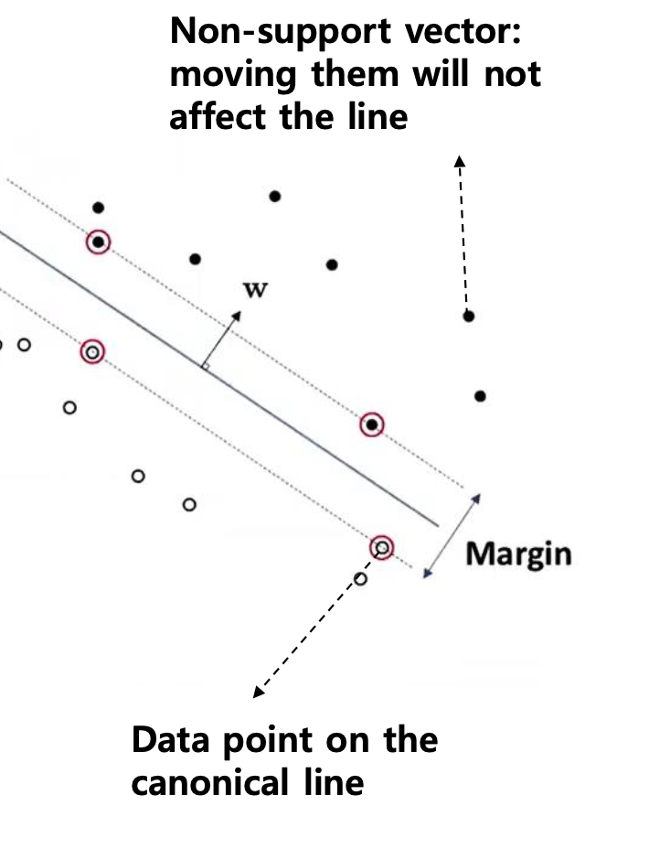 → 두 클래스의 서포트 벡터들은 이 거리가 가장 작은 점들이고,