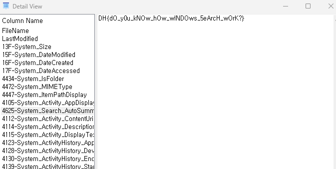 디테일 뷰를 통해 해당 플래그 파일의 내용을 들여다봐주면