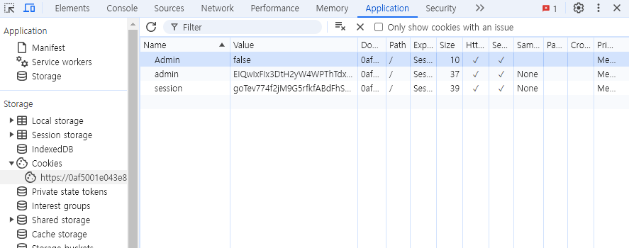 풀이: 마음대로 로그인창에 입력을 하여 로그인을 시도해보면 쿠키창에 그 세션값이 나온다.